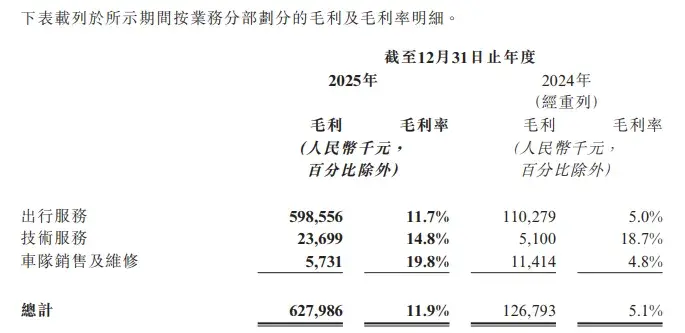 作为对比,2025年的网约车行业收入并未有太高增速,滴滴作为最大平台,整体订单增速10%左右,全国的增速也跟滴滴差不多,因此不难看出如祺的网约车市场份额快速提升。背后是聚合平台如高德地图等的打车业务快速发展,协同如祺,带动其订单量一起提升,本质是替代了原先打车平台的自营车队份额。另一方面,也归因于公司管理的规模效应,使得司机等愿意加入如祺出行。