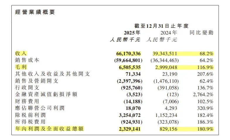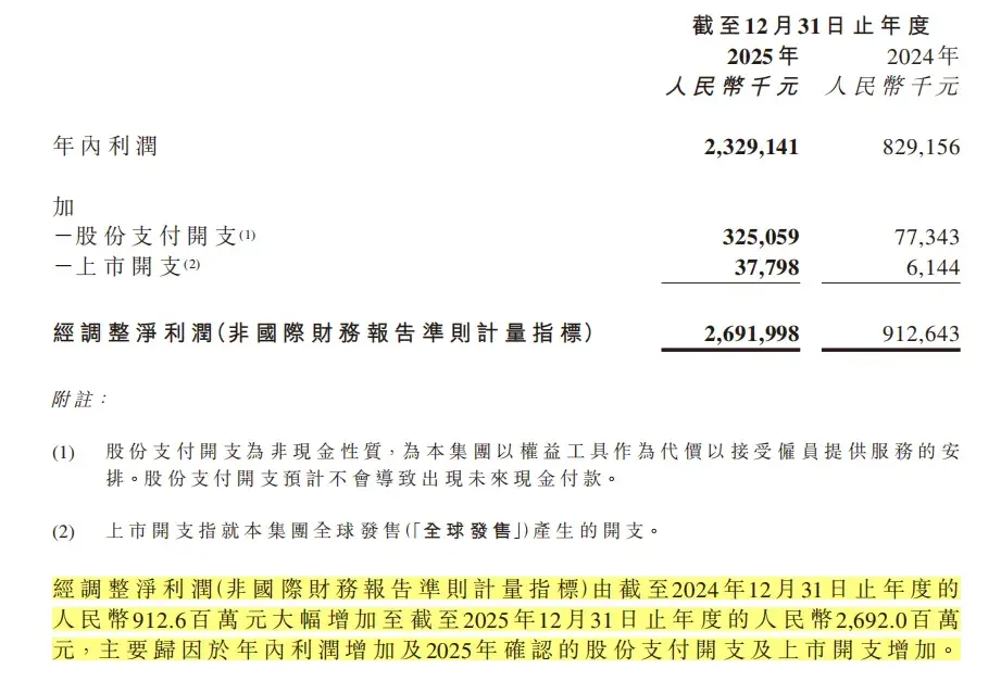 2025年,公司年内利润达到23.29亿元,同比增长180.9%;经调整净利润为26.92亿元,较2024年的9.13亿元大幅增长。